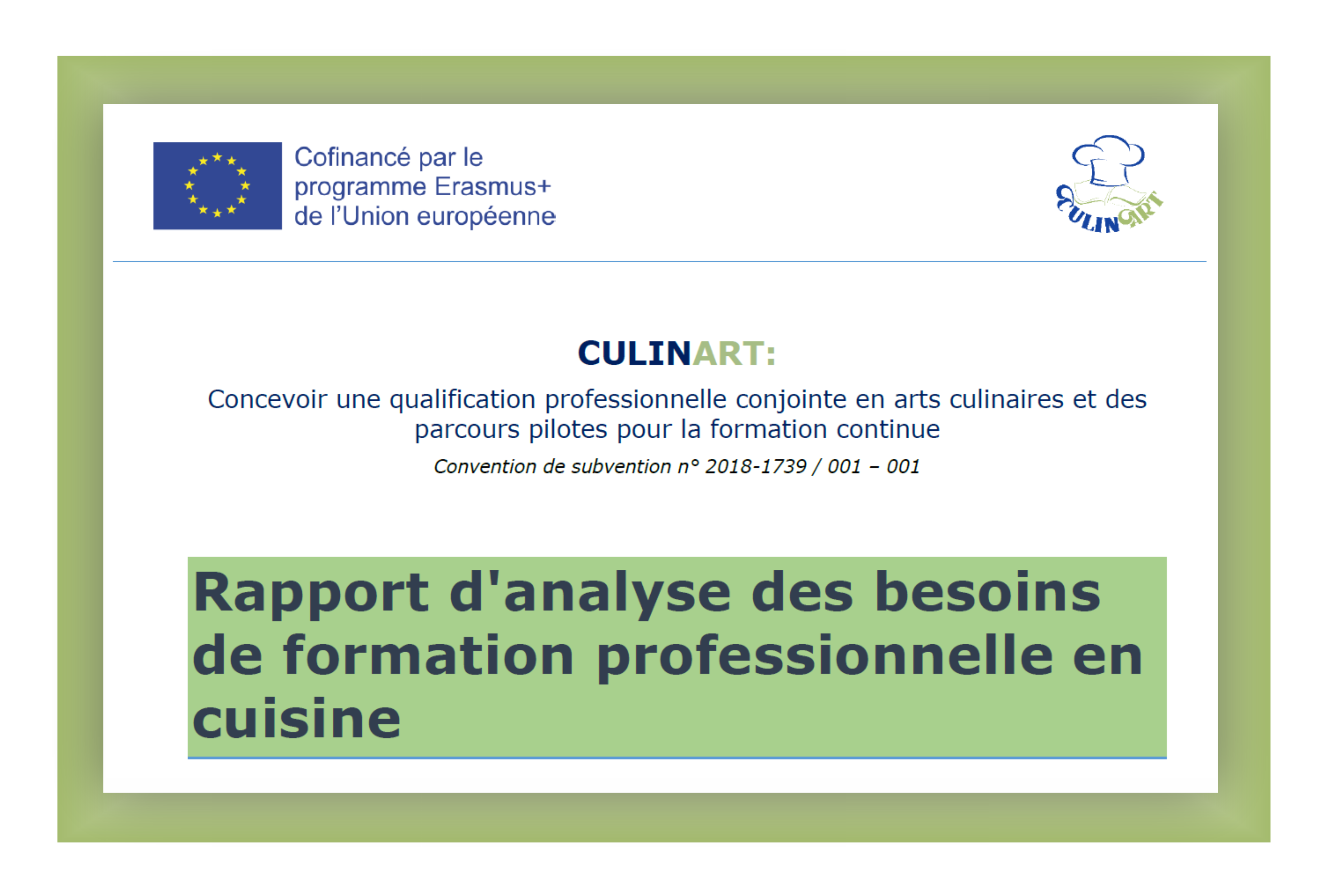 CULINART: Designing a Joint VET Qualification in Culinary Arts and Pilot Pathways for Continuing Training est co-financé par le programme Erasmus+ de la Commission européenne.